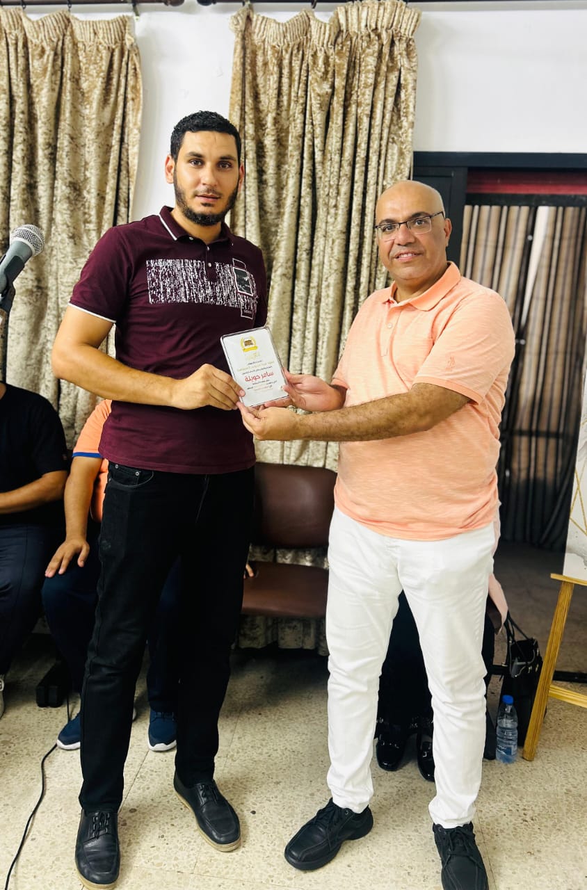 ختاماً قدم مدير المعهد الاستاذ بلال البقري دروعاً تكريمية الى افراد الهيئة التعليمية وإلى الطالبة المتفوقة روان قدورة ودعي الطلاب الى ضيافة كيك وعصير إحتفاء بهذة المناسبة.