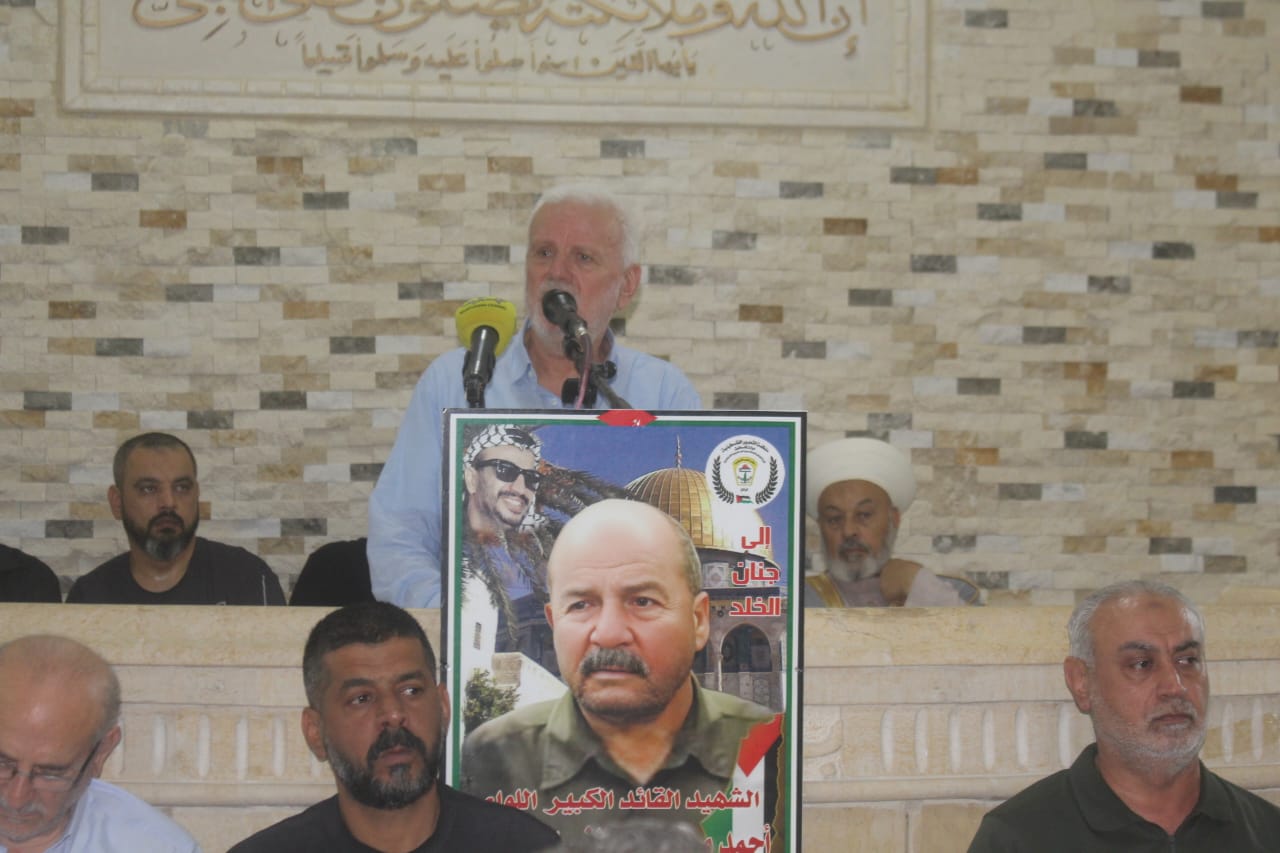 وألقى الحاج فتحي أبو العردات كلمة حركة “فتح”، ناقلًا تعازي الرئيس محمود عباس “أبو مازن” إلى عائلة الفقيد، ومشددًا على أن اللواء طانيوس شكّل نموذجًا للفدائي الملتزم، الذي أفنى عمره في سبيل فلسطين وتمسك بالثوابت الوطنية حتى آخر لحظة من حياته. وأكد أن رحيله خسارة كبيرة، لكنه ترك إرثًا نضاليًا سيبقى منارة للأجيال، لافتًا إلى أن المرحلة الراهنة تفرض تعزيز الوحدة الوطنية لمواجهة التحديات تحت مظلة منظمة التحرير الفلسطينية.