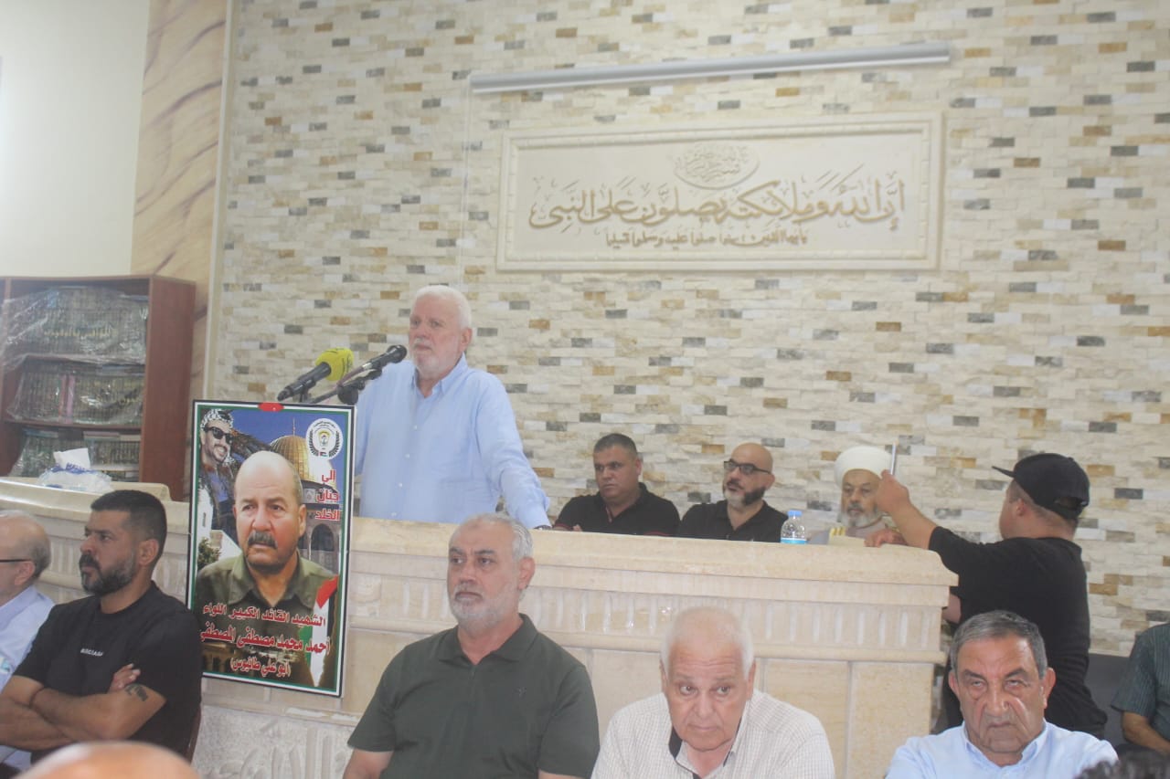 أحيت حركة التحرير الوطني الفلسطيني “فتح” والهيئة الوطنية للمتقاعدين العسكريين الفلسطينيين، بالتعاون مع قوات الأمن الوطني الفلسطيني في لبنان، مهرجانًا تأبينيًا حاشدًا تكريمًا لروح الشهيد القائد الوطني اللواء أحمد محمد المصطفى “أبو علي طانيوس”، القائد السابق لقوات الأمن الوطني الفلسطيني في لبنان. وأقيمت المراسم، يوم الجمعة، في قاعة مسجد الرسول الأكرم ببلدة القاسمية – قضاء صور، وسط حضور شعبي ورسمي واسع.