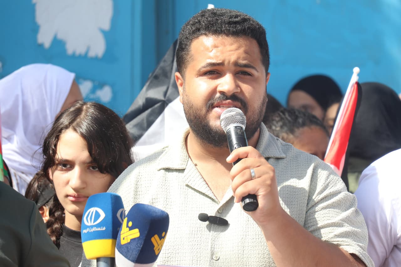 وطالب جانا الأونروا بوضع خطة طوارئ تربوية شاملة، تشمل فتح صفوف جديدة بدل الدمج، توظيف معلمين جدد، تحسين جودة التعليم بما يتناسب مع حاجات الطلاب، وتأهيل الأبنية بشكل عاجل. مؤكدا أنّ الاعتصام يمثل الشرارة الأولى في مسار نضالي طويل سيستمر في مختلف المخيمات والتجمعات الفلسطينية حتى تتحمل الأونروا كامل مسؤولياتها، مشيرًا إلى أنّ هذه المعركة ليست من أجل صفوف وكتب فقط، بل هي معركة وجود وكرامة، لأن التعليم بالنسبة للشعب الفلسطيني هو السلاح الأول في مواجهة محاولات التجهيل والتهميش ومشاريع التوطين والتهجير.