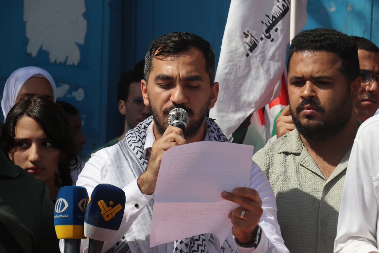 بعد كلمة ترحيبية من الرفيق هادي العدوي تحدث عضو قيادة “أشد” في لبنان الرفيق حسن جانا الذي أكد أن التحرك جاء ليعبّر عن رفض الطلاب الفلسطينيين لسياسات الإهمال والتقليص، مشددًا على أن قضية التعليم في لبنان لم تعد تحتمل المزيد من المماطلة والتسويف. وقال جانا إن مدارس الأونروا تعيش أوضاعًا كارثية نتيجة الاكتظاظ الحاد داخل الصفوف، والنقص الكبير في الكادر التعليمي، إلى جانب سياسة الدمج العشوائي التي تحرم آلاف الطلاب من حقهم في التعلّم بظروف ملائمة. وأشار جانا إلى أنّ هذه السياسات ليست مجرد مشاكل إدارية عابرة، بل تأتي في إطار تقليص ممنهج يهدد حق اللاجئين في التعليم ويستهدف مستقبلهم.