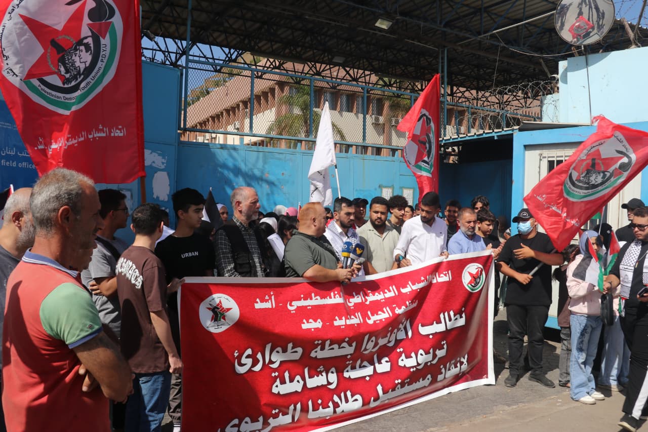 دفاعا عن حق الطلاب الفلسطينيين في التعليم ورفضا لتقليصات الاونروا التربوية واجراءاتها مع بدء العام الدراسي الجديد، نظّم اتحاد الشباب الديمقراطي الفلسطيني – “أشد” ومنظمة الجيل الجديد – “مجد” اعتصامًا طلابيًا أمام المقر الرئيسي لوكالة غوث وتشغيل اللاجئين الفلسطينيين (الأونروا) في العاصمة بيروت، بمشاركة طلابية وشبابية واسعة.