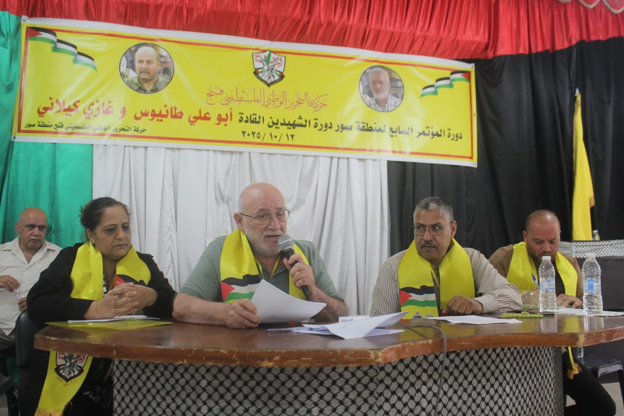 عقدت حركة “فتح” في منطقة صور مؤتمرها التنظيمي السابع، تحت عنوان “دورة الشهيدين القائدين أبو علي طانيوس وغازي كيلاني”، وذلك يوم الأحد الموافق 12-10-2025، في قاعة الشهيد فيصل الحسيني بمخيم الرشيدية.