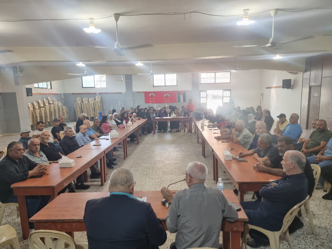 أدار الندوة الرفيق عبد كنعان، عضو قيادة الجبهة في لبنان، بحضور ممثلين عن الفصائل الفلسطينية واللجان والاتحادات الشعبية والمؤسسات الاجتماعية، وعدد من الشخصيات الوطنية والثقافية، إلى جانب حشد من أبناء المخيم.