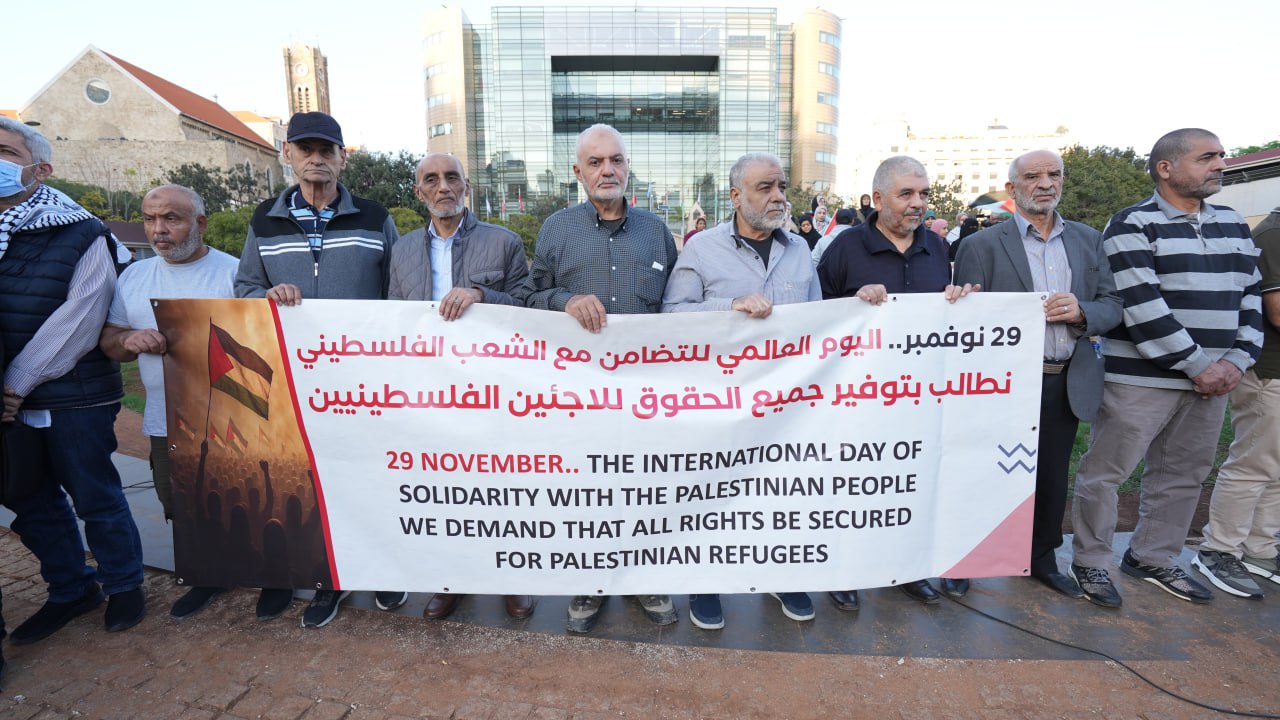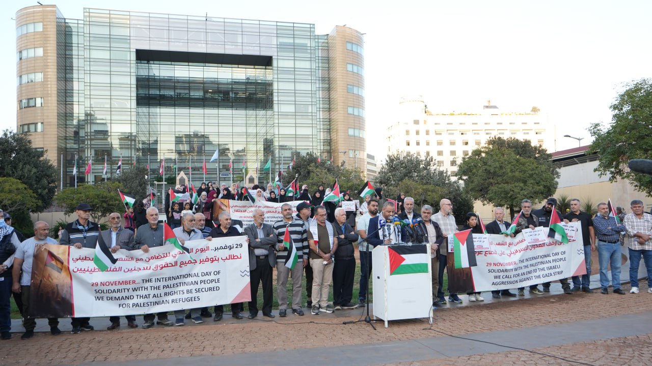شهدت ساحة (الإسكوا) في بيروت، عصر اليوم الخميس، وقفة تضامنية نظمها عدد من المؤسسات والجمعيات الأهلية الفلسطينية بالتعاون مع هيئة نصرة الأقصى واللجنة الشبابية والطلابية، إحياءً لليوم العالمي للتضامن مع الشعب الفلسطيني.
