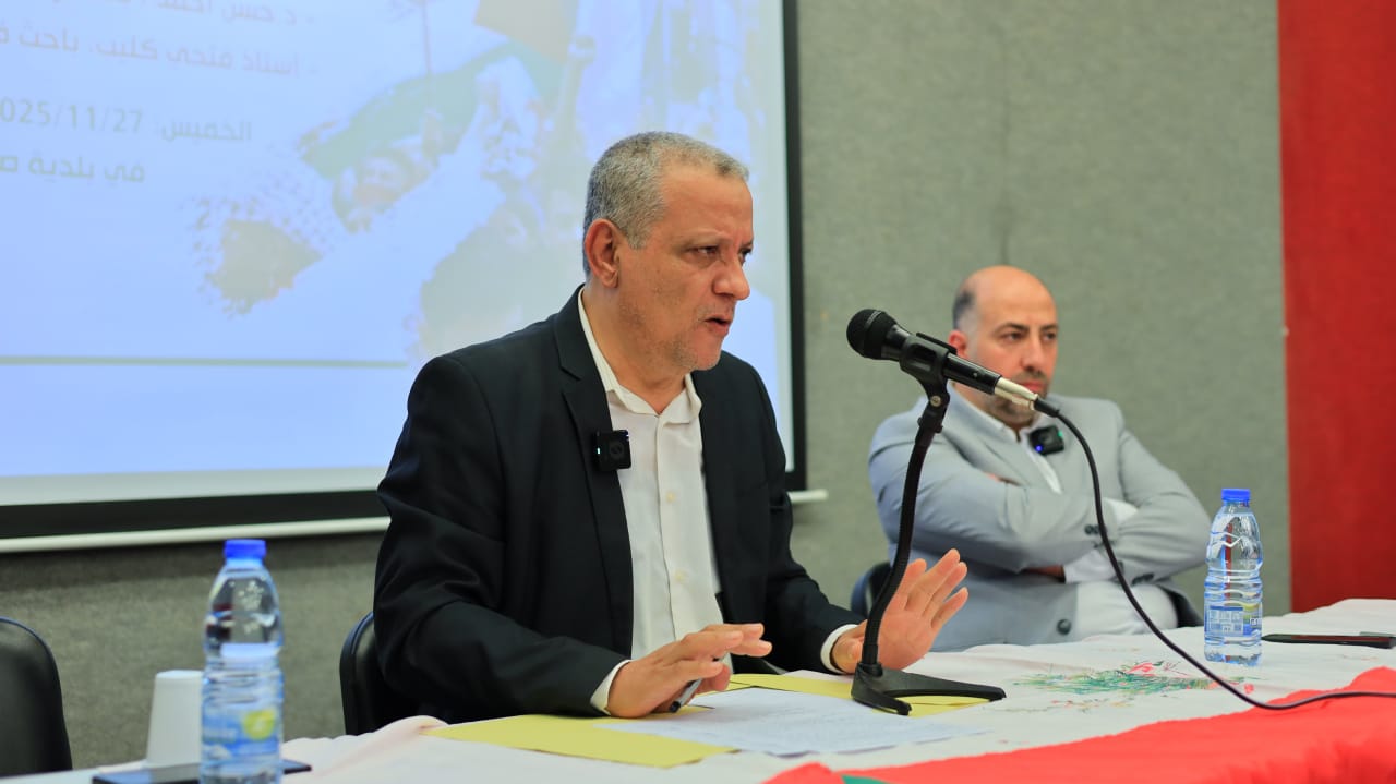 كما قدّم الأستاذ فتحي كليب، الباحث في شؤون اللاجئين، مداخلة بعنوان “الحرب الثقافية وإعادة صياغة الرواية في ظل العدوان”، ركّز فيها على البعد الثقافي والإعلامي للصراع. وأشار إلى وجود غرف إدارة أميركية–إسرائيلية تعمل على فرض رواية جديدة تهدف إلى طمس سردية الشعب الفلسطيني. واعتبر أن طوفان الأقصى جاء نتيجة طبيعية لسياسات الاحتلال، وأن الشعب الفلسطيني ما زال ثابتًا رغم التضحيات.