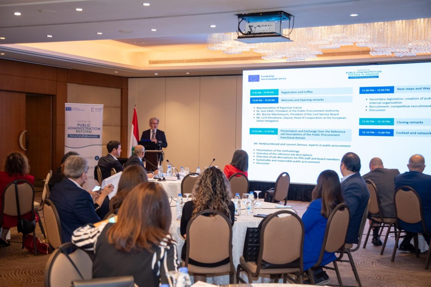 وقد شارك في ورشة العمل رئيس هيئة الشراء العام الدكتور جان العليّة، رئيسة مجلس الخدمة المدنية السيدة نسرين مشموشي، ممثل الاتحاد الأوروبي سيريا دوالين، السيد فابيان مونكاد ممثّل Expertise France، وقدّم الخبيران الدوليان محفوظ برادي ولوران دنّو عرضاً للمنهجية والنتائج، مع إبراز دمج مبادئ الشراء المستدام والمسؤول ككفاءة أساسية في الإطار الجديد.