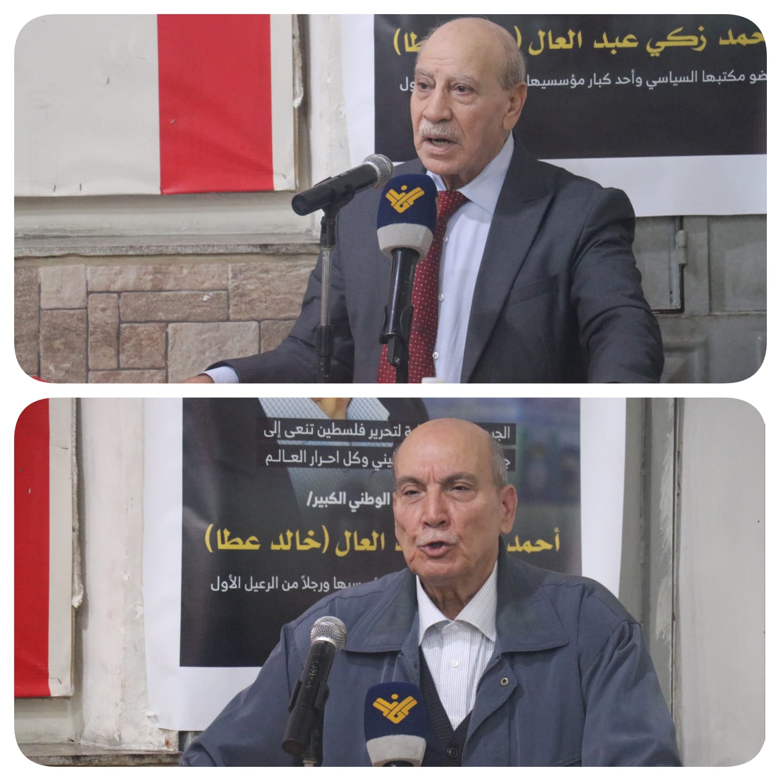 كلمة رفاق درب الشهيد ألقاها نائب رئيس المجلس الوطني الفلسطيني ونائب الأمين العام للجبهة الديمقراطية لتحرير فلسطين الرفيق علي فيصل استحضر فيها السيرة النضالية الغنية للشهيد القائد خالد عطا، مُسلطاً الضوء على مناقبيته الوطنية والتنظيمية، ودوره الريادي في تأسيس وبناء الجبهة الديمقراطية في عدد من الساحات والأقاليم، والتزامه العميق بقضايا اللاجئين، والدفاع عن منظمة التحرير الفلسطينية والمخيمات، ومواجهة الاحتلال والعدوان في مختلف المراحل، كما أكد أن الشهيد كان قائداً استثنائياً ومثقفاً موسوعياً جمع بين الصلابة المبدئية والانفتاح الفكري، فشكّل مرجعاً سياسياً وتنظيمياً، وسنداً لرفاقه، ومرشداً للأجيال التي تتلمذت على يديه في مسيرتها النضالية.