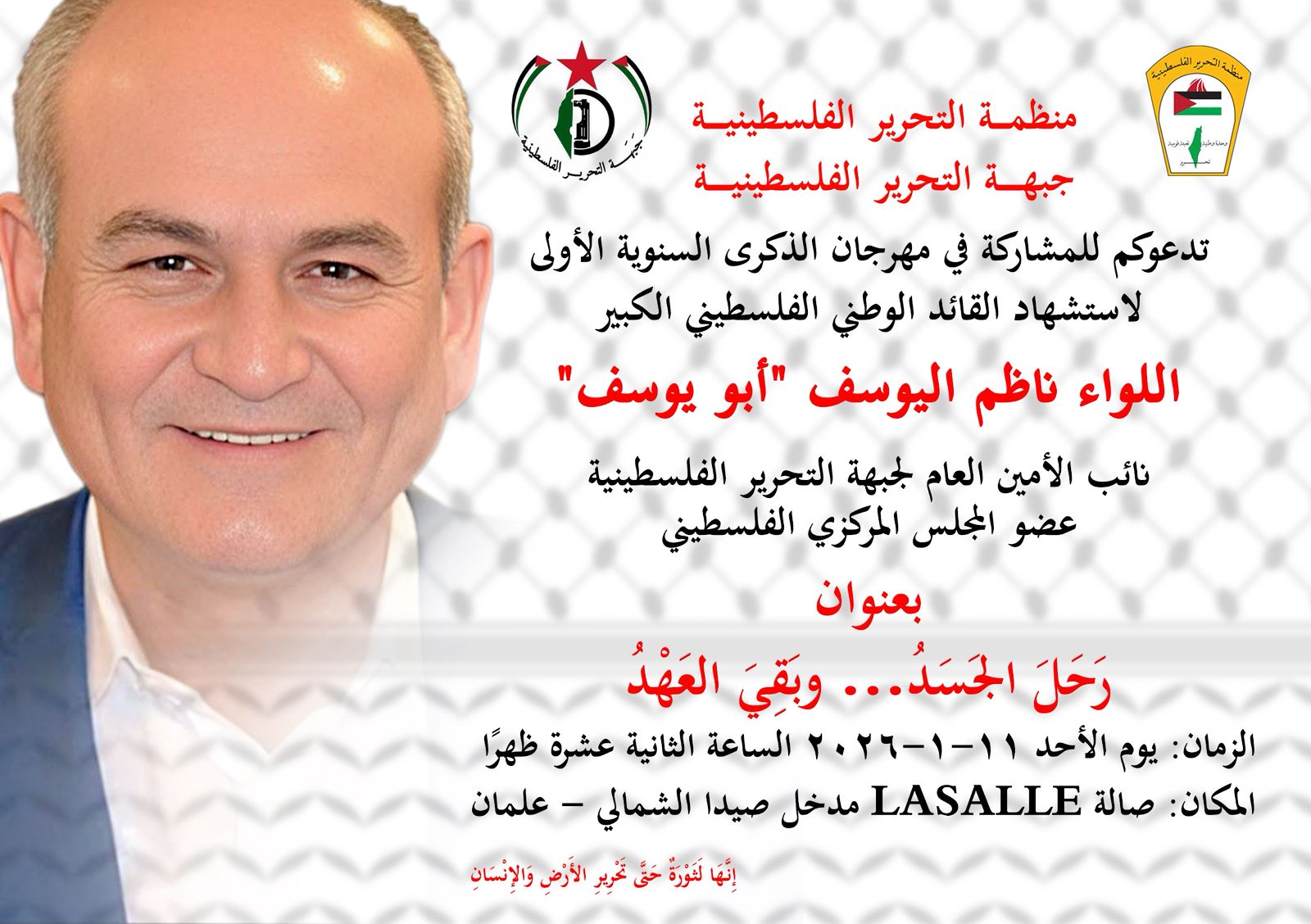 جبهة التحرير الفلسطينية تحي الذكرى السنوية الأولى لرحيل القائد ناظم اليوسف