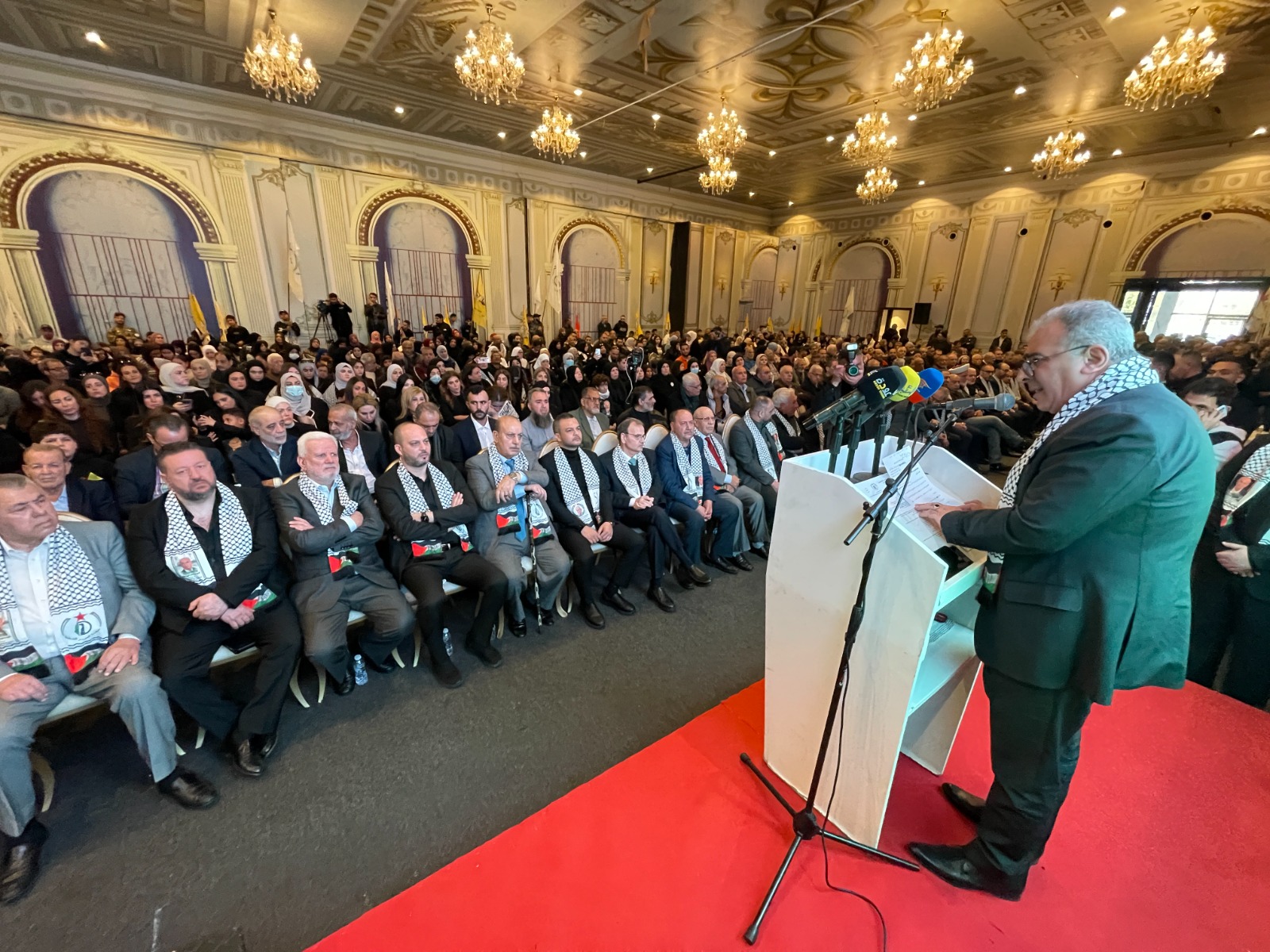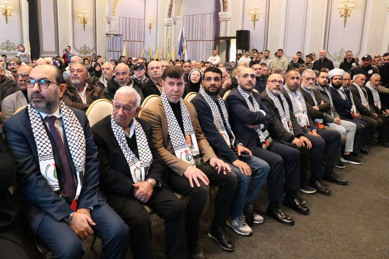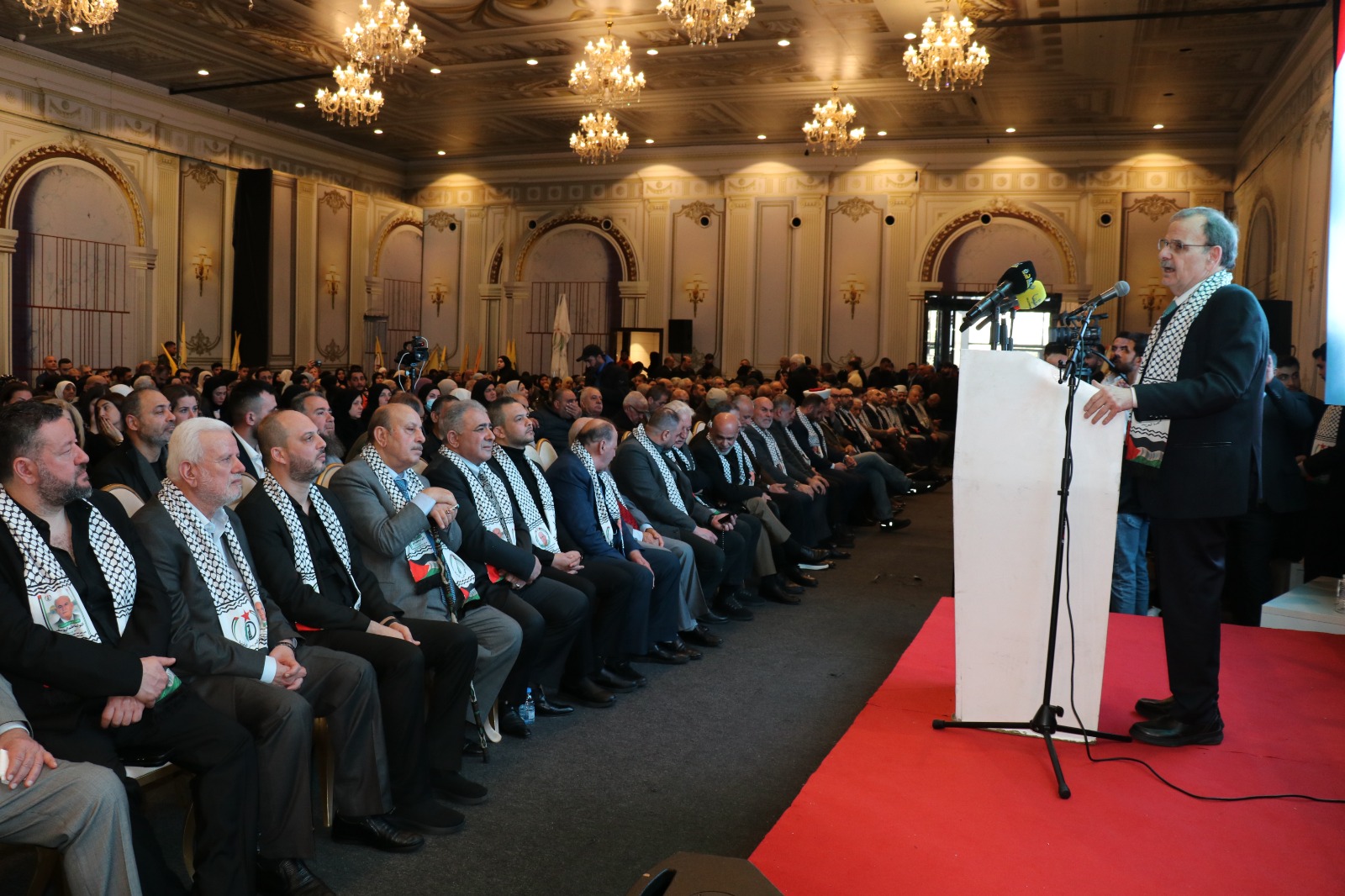 واستذكر تاريخ مرحلة نضال في لبنان وقال: اليوم تعود بي الذاكرة إلى ما قبل خمسة عشر عاماً، مرّت، لم تُتح لي الظروف خلالها، فرصةً اللقاء المُباشر، أو الحديث وجهاً لوجه مع الأحبّة، الذين جمعنا معهم تاريخٌ ومحطات نضالية مُتعددة، شكّلت جزءاً من الذاكرة الوطنية، وبقيت حاضرة في الوجدان على الرغم من تعاقب السنين. تعود بي الذاكرة إلى محطات كنا نلتقي فيها، في مثل هذه الأيام، على إيقاع شعلة انطلاقة الثورة الفلسطينية، ونحن نُحيي الذكرى الواحدة والستين لانطلاقة المارد الفتحاوي المُتجدّد، نستحضر فيها اللحظات الأولى، كما أعلنها القائد الشهيد الرمز ياسر عرفات، مع انطلاق عملية “عيلبون”، وصدور بيان “العاصفة” الأول، إيذاناً بميلاد حركة تحرر وطنية مُتجدّدة. إن أبناء شَعبِنا الفلسطيني في لبنان، الذين قدموا التضحيات الجسام، يستحقون كل تقدير واحترام.