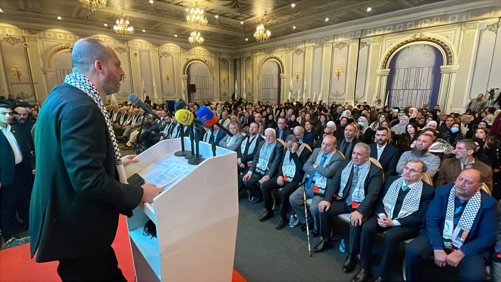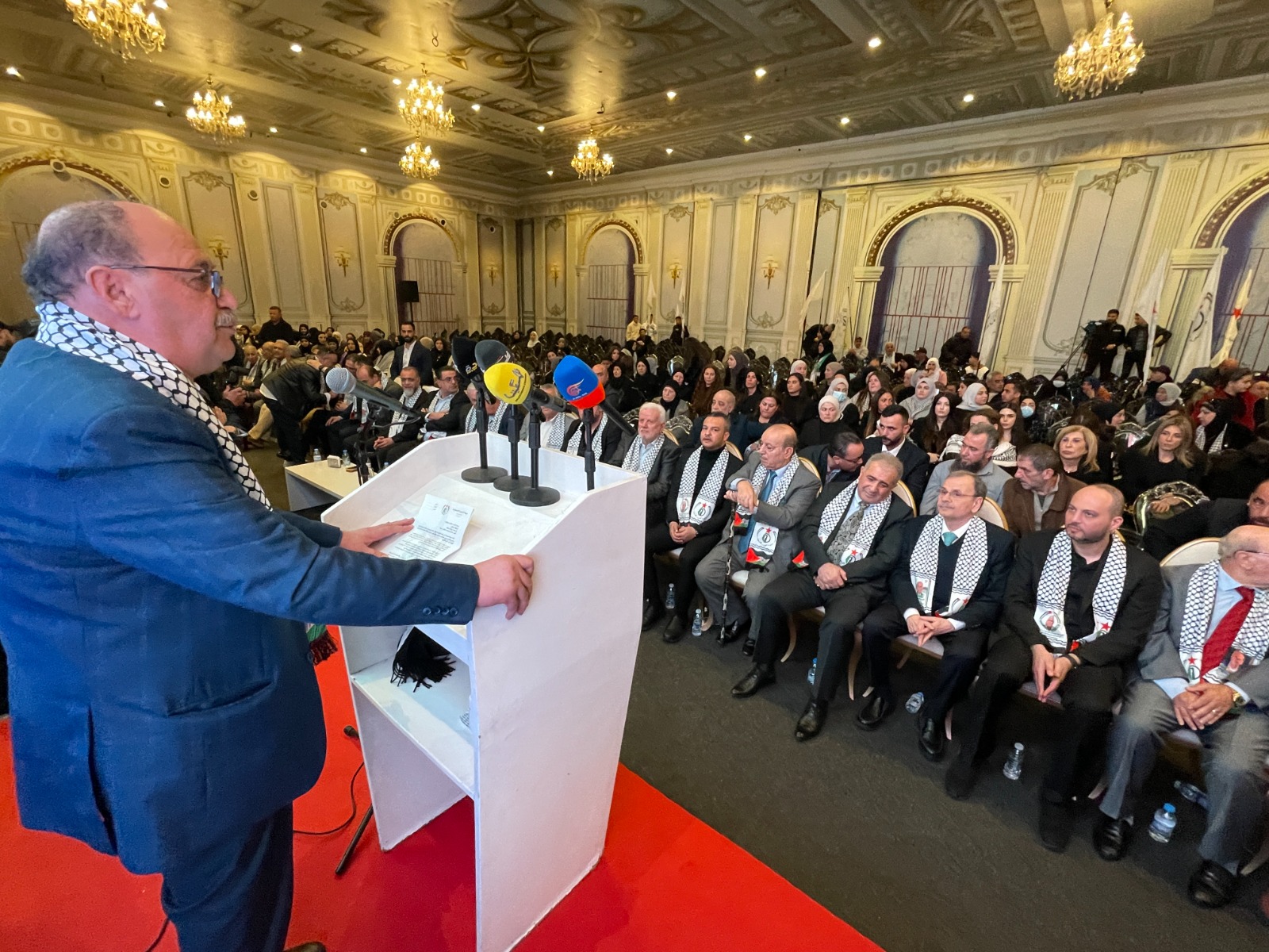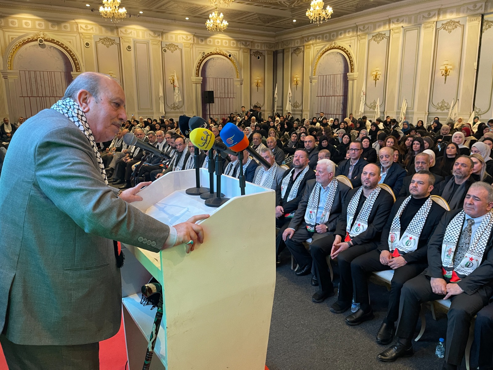 واستذكر تاريخ مرحلة نضال في لبنان وقال: اليوم تعود بي الذاكرة إلى ما قبل خمسة عشر عاماً، مرّت، لم تُتح لي الظروف خلالها، فرصةً اللقاء المُباشر، أو الحديث وجهاً لوجه مع الأحبّة، الذين جمعنا معهم تاريخٌ ومحطات نضالية مُتعددة، شكّلت جزءاً من الذاكرة الوطنية، وبقيت حاضرة في الوجدان على الرغم من تعاقب السنين. تعود بي الذاكرة إلى محطات كنا نلتقي فيها، في مثل هذه الأيام، على إيقاع شعلة انطلاقة الثورة الفلسطينية، ونحن نُحيي الذكرى الواحدة والستين لانطلاقة المارد الفتحاوي المُتجدّد، نستحضر فيها اللحظات الأولى، كما أعلنها القائد الشهيد الرمز ياسر عرفات، مع انطلاق عملية “عيلبون”، وصدور بيان “العاصفة” الأول، إيذاناً بميلاد حركة تحرر وطنية مُتجدّدة. إن أبناء شَعبِنا الفلسطيني في لبنان، الذين قدموا التضحيات الجسام، يستحقون كل تقدير واحترام.