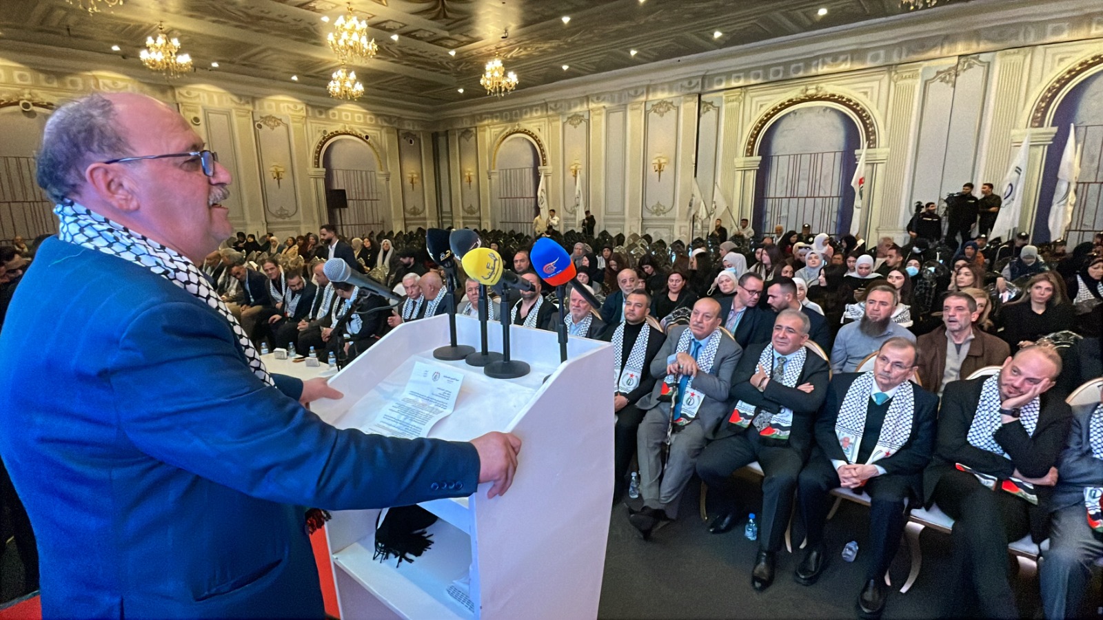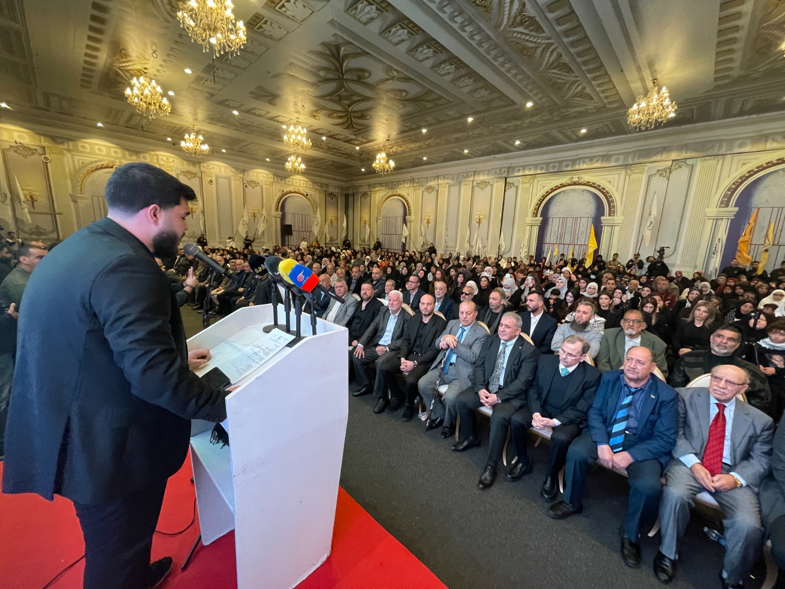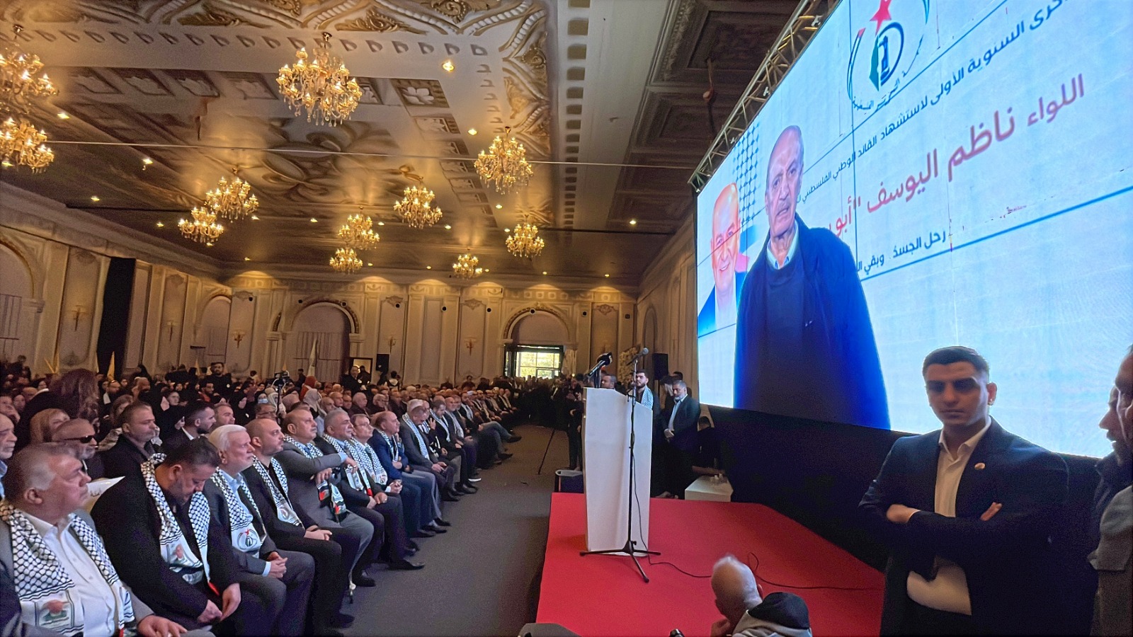 وتحدث سفير دولة فلسطين في لبنا الدكتور محمد الاسعد فقال “نلتقي اليوم لإحياء الذكرى السنوية الأولى لرحيل القائد الوطني الفلسطيني، اللواء ناظم اليوسف – أبو يوسف، تحت عنوانٍ يحمل دلالة عميقة: «رَحَلَ الجَسَدُ وَبَقِيَ العَهد». وهو عنوان يختصر معنى الوفاء، ويؤكد أن القادة الشهداء لا يغيبون ما دام العهد مستمرًا وما دامت القضية حاضرة في الوعي والمسؤولية. لقد شكّل رحيل ناظم اليوسف نموذجًا للقائد الوطني المسؤول، الذي جمع بين وضوح الرؤية وثبات الموقف، وفهم العمل الوطني باعتباره مشروعًا مؤسساتيًا جامعًا، قائمًا على الشراكة واحترام الأطر الشرعية.