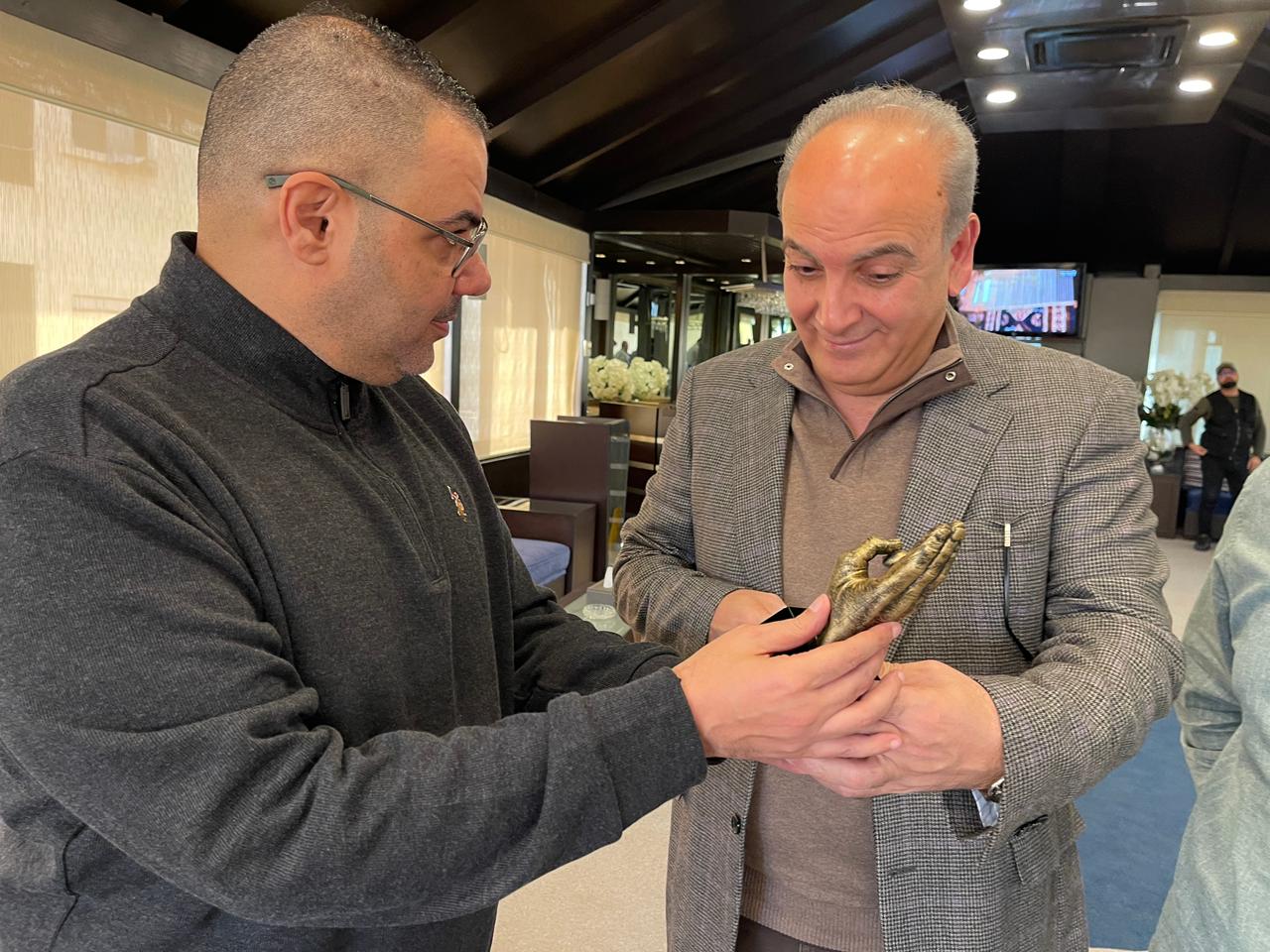 وضم وفد جمعية كشافة الفاروق: المفوض العام القائد مهيب قدورة، نائب المفوض العام ماهر الخطيب، والمفوض الإداري أحمد البيطار، وقدم له درع التكريم الذي حمل شعار التحية الكشفية لما لها من رمزية بمعانيها التي تدل على الواجب نحو الله والوطن والذات، وأن الجميع عائلة واحدة، الصغير يحترم الكبير، والكبير يعطف على الصغير.