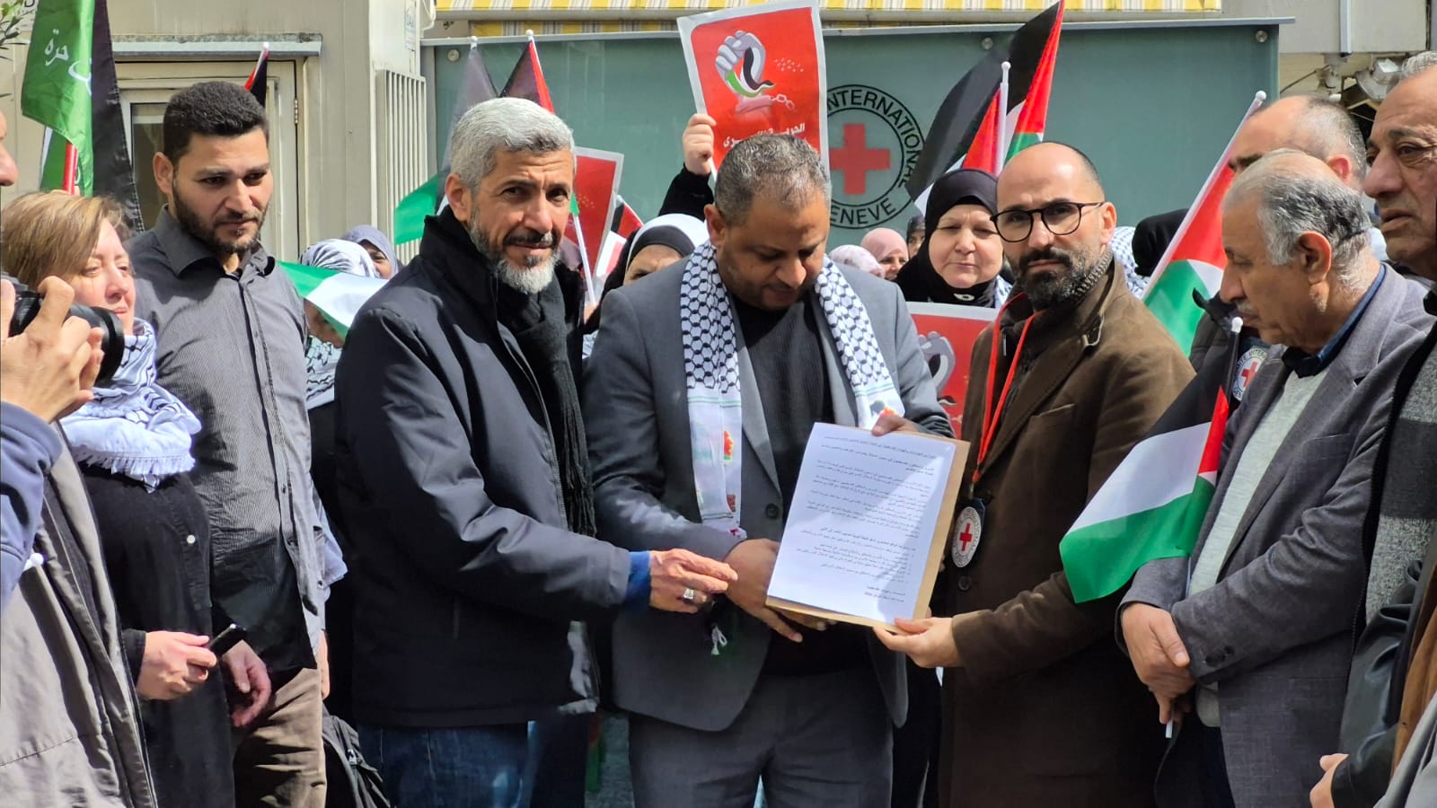 وفي نهاية الاعتصام قدم المشاركون مذكرة لممثلي الصليب الأحمر الدولي حملت مجموعة من المطالب أهمها: التحرك الدولي العاجل لوقف الممارسات الإرهابية الإسرائيلية ضد الأسرى والمعتقلين والعمل على تحريرهم من المعتقلات الإسرائيلية.